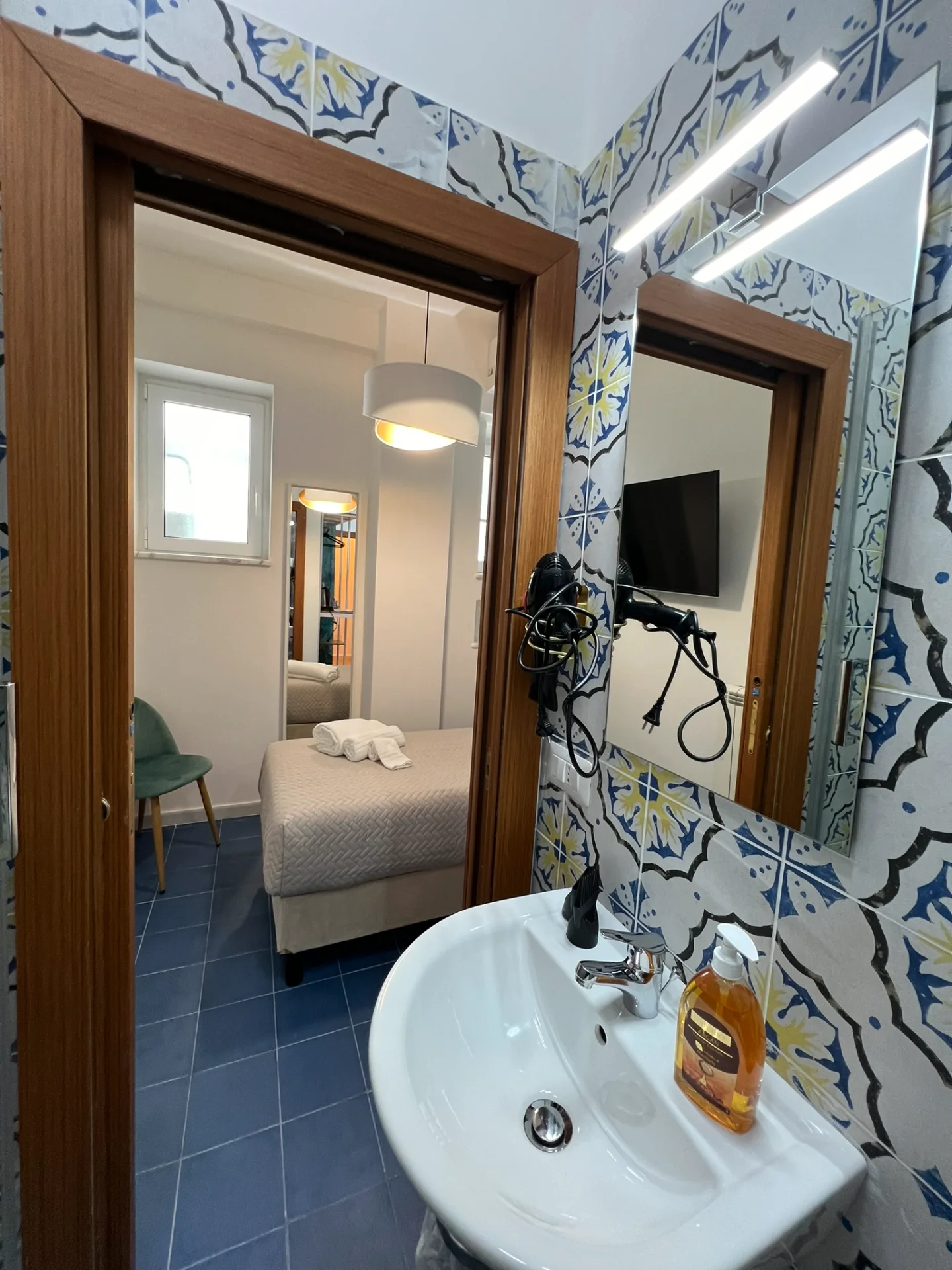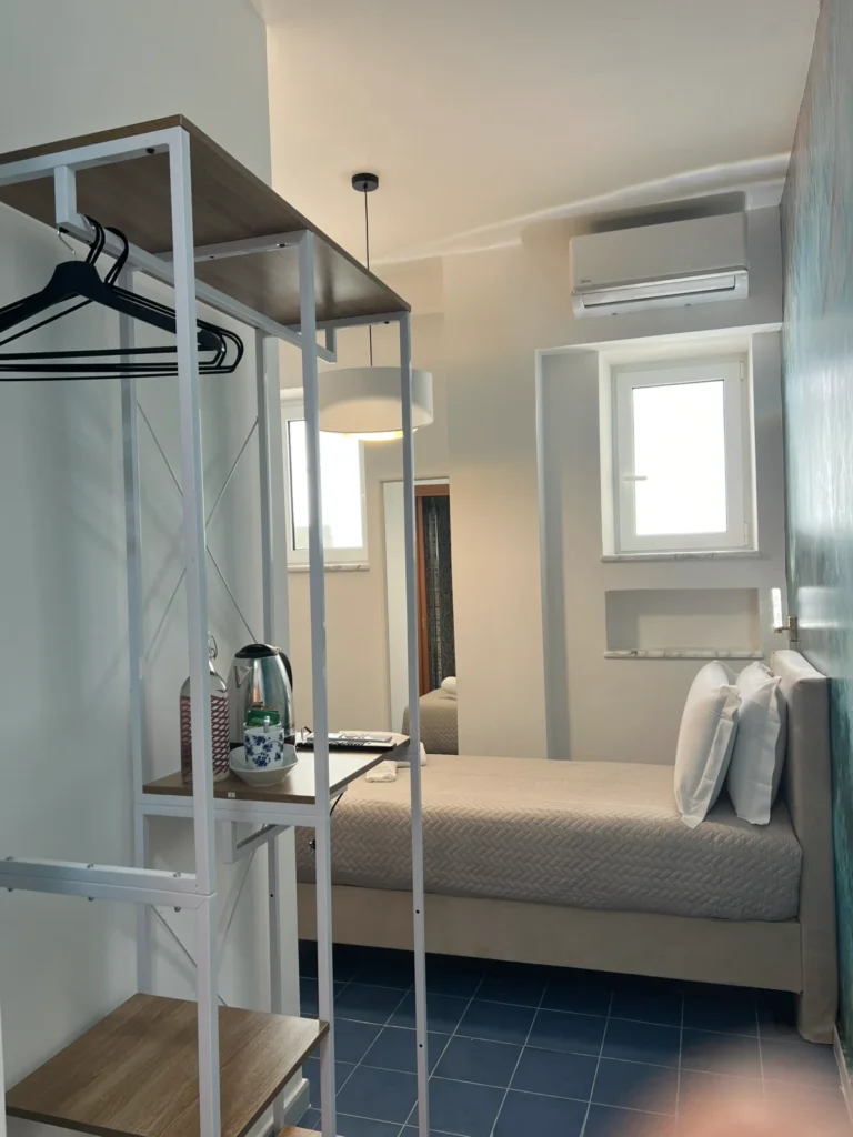 La struttura si trova a due passi sia da piazza plebiscito che dal porto. È anche attaccata a via Toledo e ai quartieri spagnoli e a circa 15 minuti a piedi da via dei tribunali. La stanza, dotata di aria condizionata, tv e frigo bar, è molto accogliente e silenziosa. Il bagno è pulito. La ragazza della reception, Serena, è molto cordiale e disponibile a dare suggerimenti su dove mangiare e cosa visitare in città. B&B sicuramente consigliato.